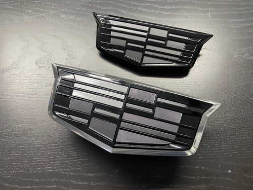 Cadillac Escalades/ESV emblems for the 2025 models. Grille and Liftgate set. Custom painted and Blacked out emblems, badges, Bowties.